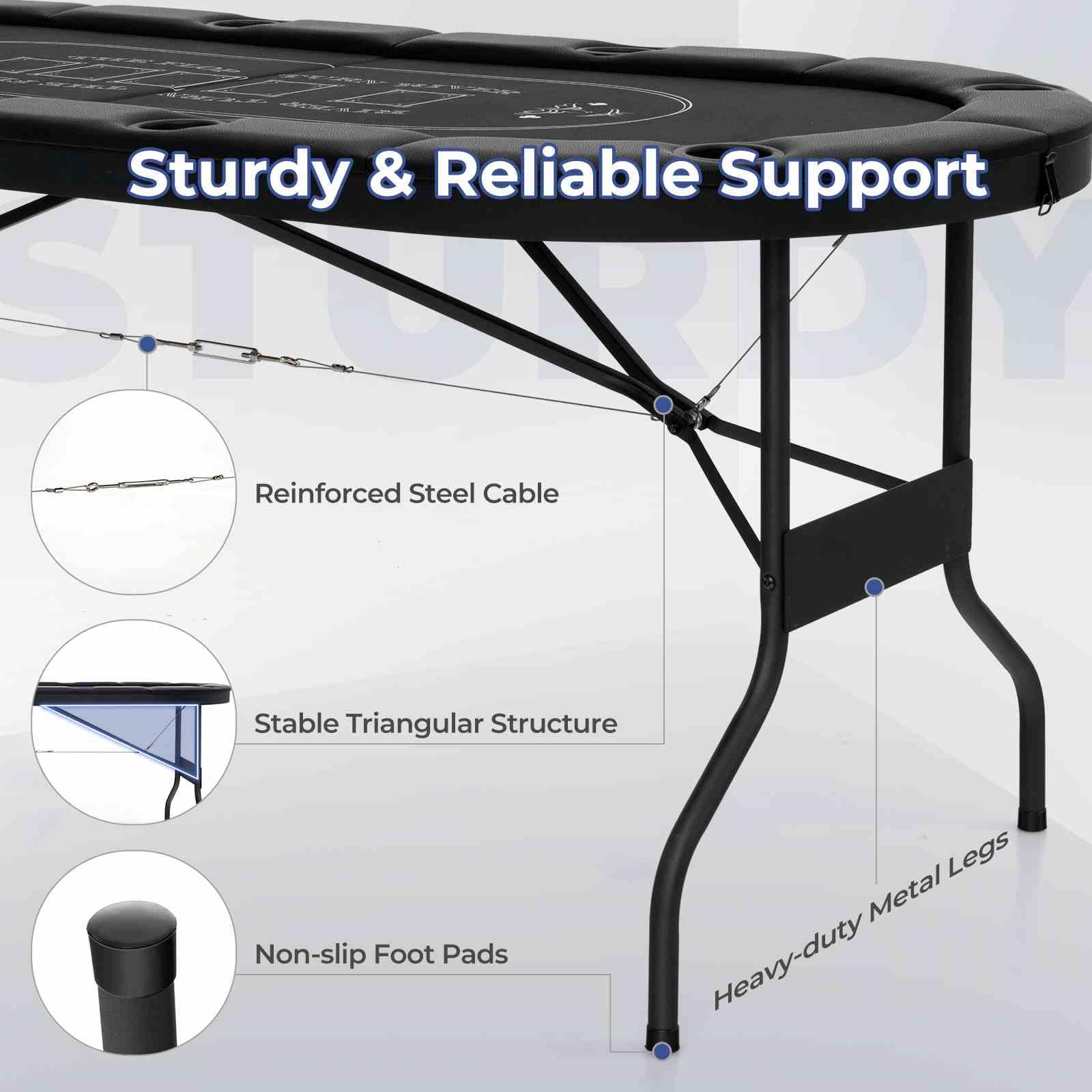 1.8m Foldable Poker Table for 8 Players Portable Oval Card Board Game Table
