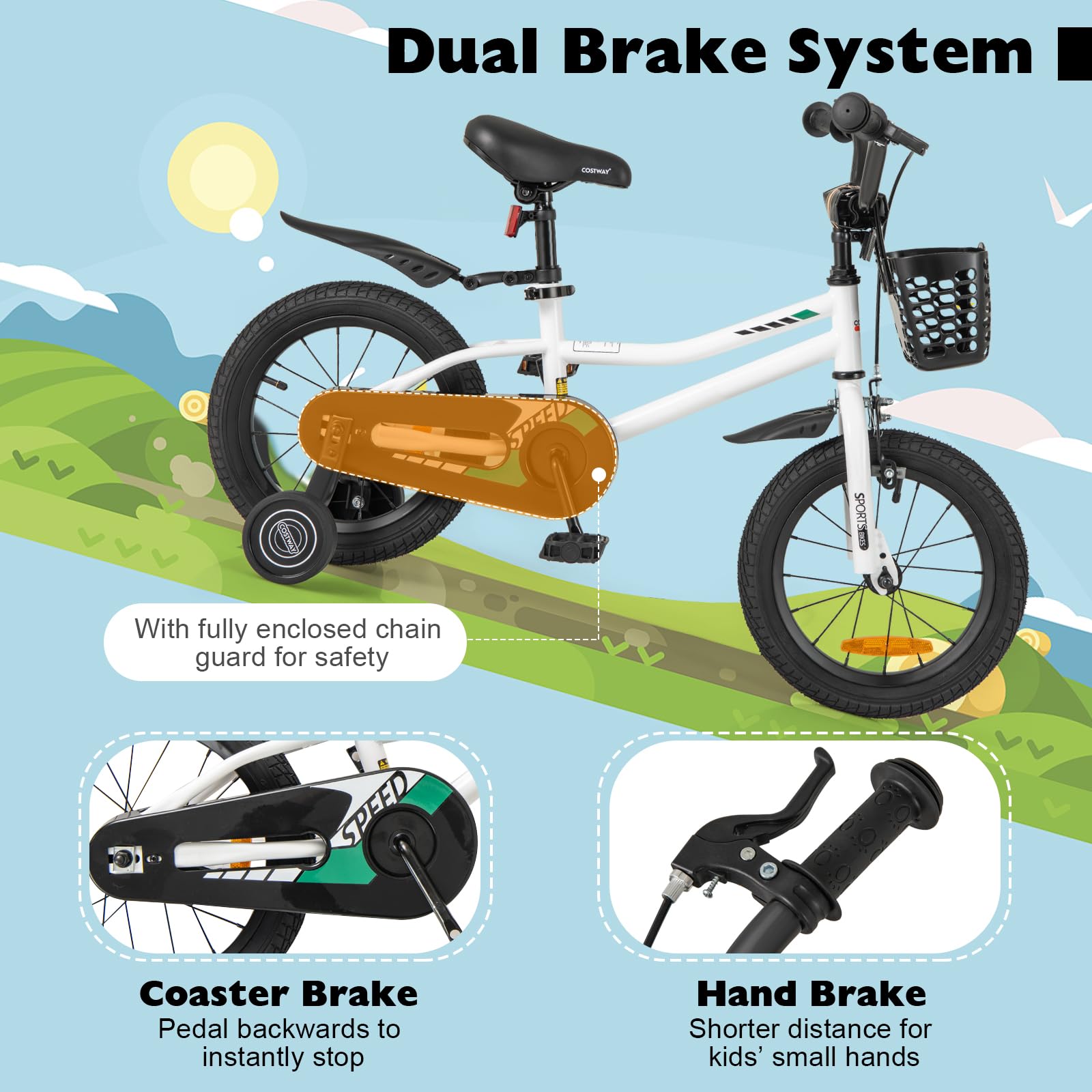 14 16 18 Inch Kids Bike with Training Wheels for Girls Boys