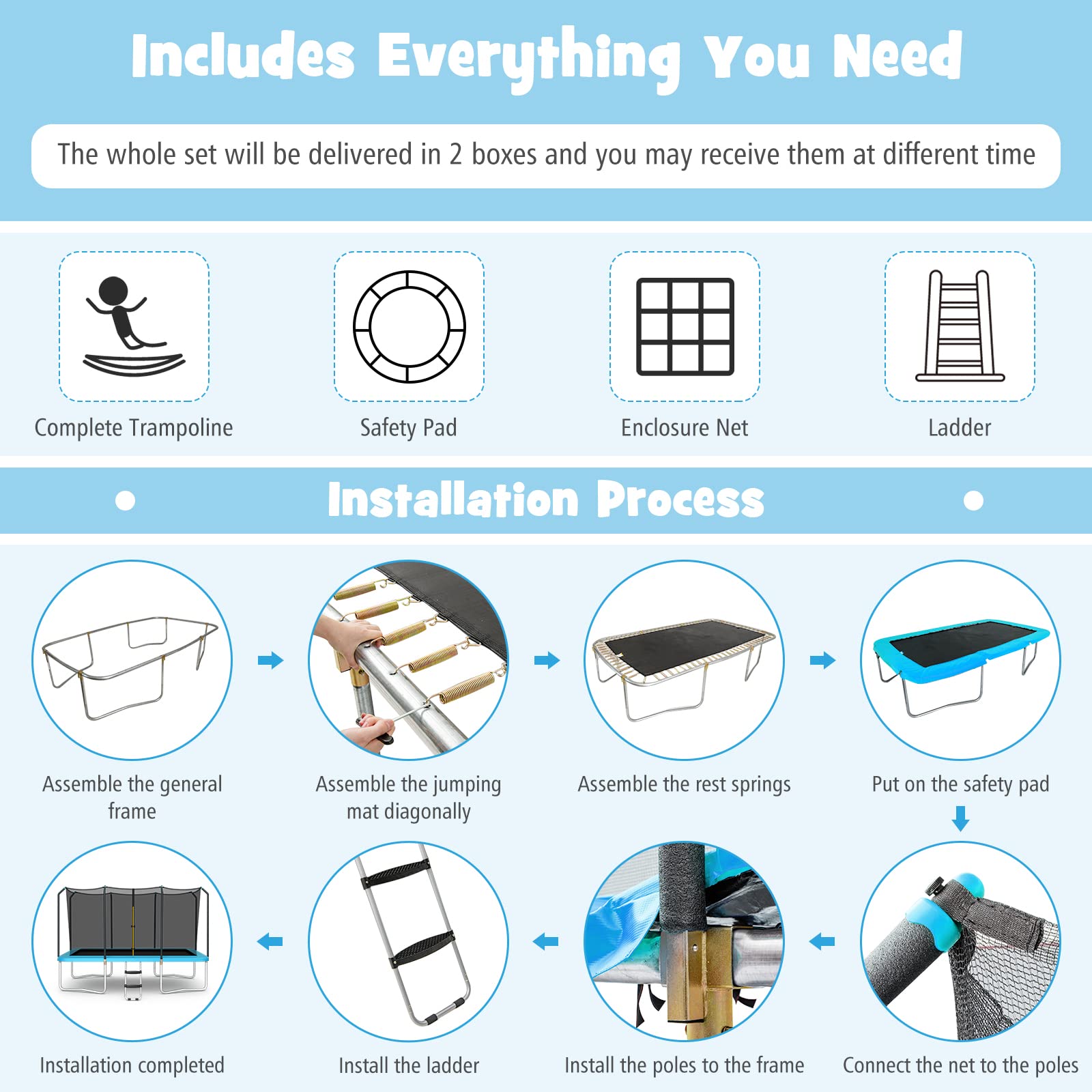 14 x 8FT Outdoor Kids Trampoline with Enclosure Net for Kids Adults