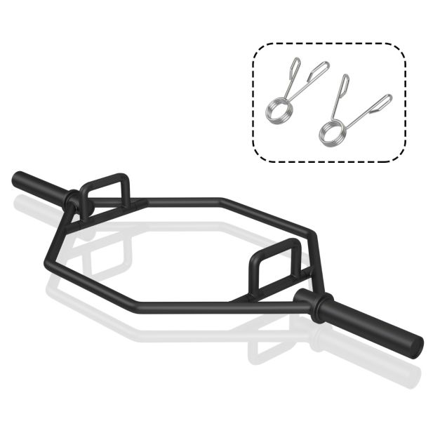 If you’re in the market for fitness equipment that is suitable for many different types of fitness activities, like powerlifting, push-ups and presses, then this is for you. Made of heavy-duty steel with phosphorizing finishing, our Olympic hex bar is rust and wear-resistant. You are free to add weight plates to the loadable sleeve, as long as the thickness and the weight of the plates do not exceed the limit of the bar. The whole product has a maximum bearing capacity of 365kg. Except for that, 2 snap springs, included in the package, help you fix and lock the weight plates tightly. 2 different grip positions, and both are knurled to increase friction and meet your different fitness needs. It is worth mentioning that the grip can be folded.