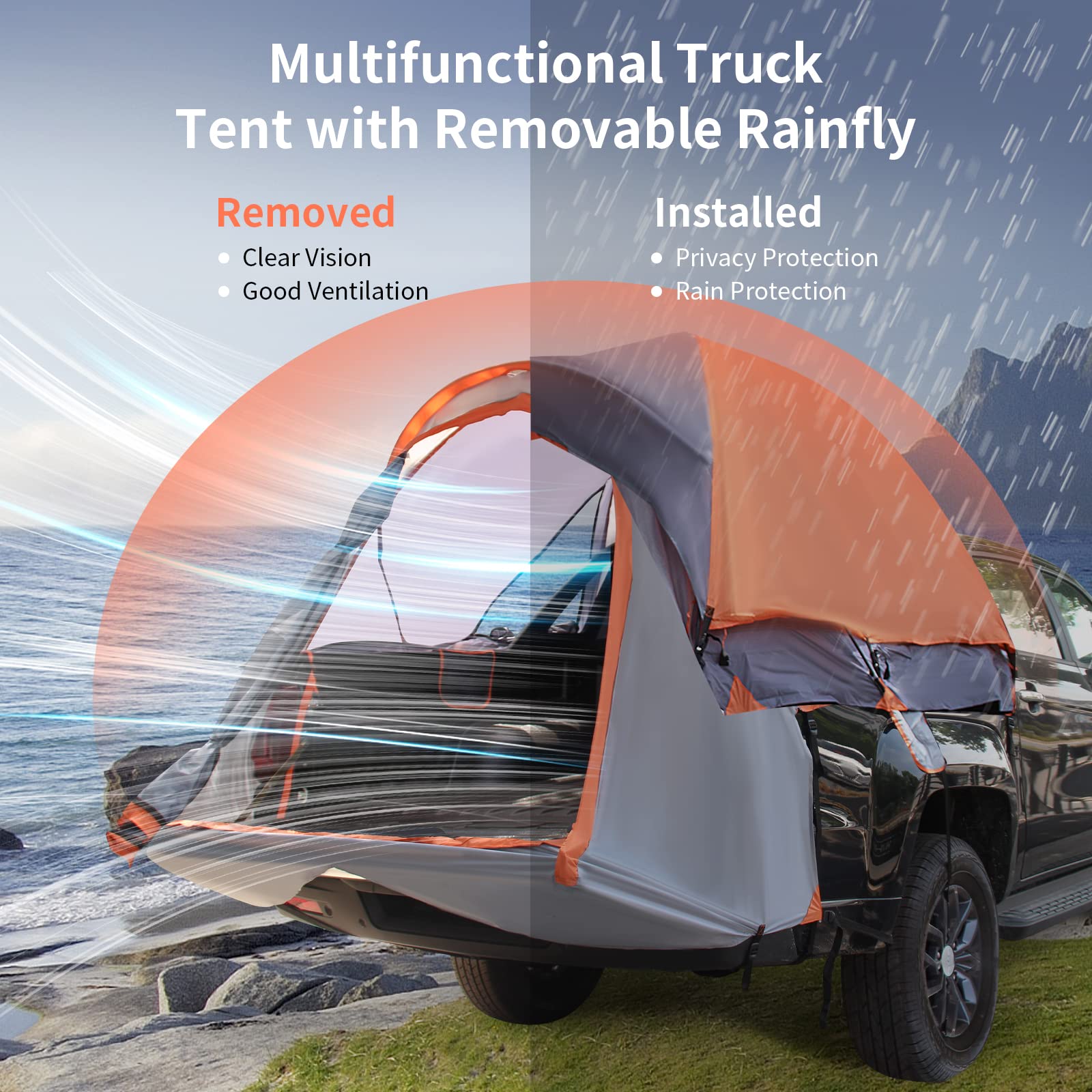3-Size Truck Bed Tent for 2-3 Persons Camping Hiking Fishing