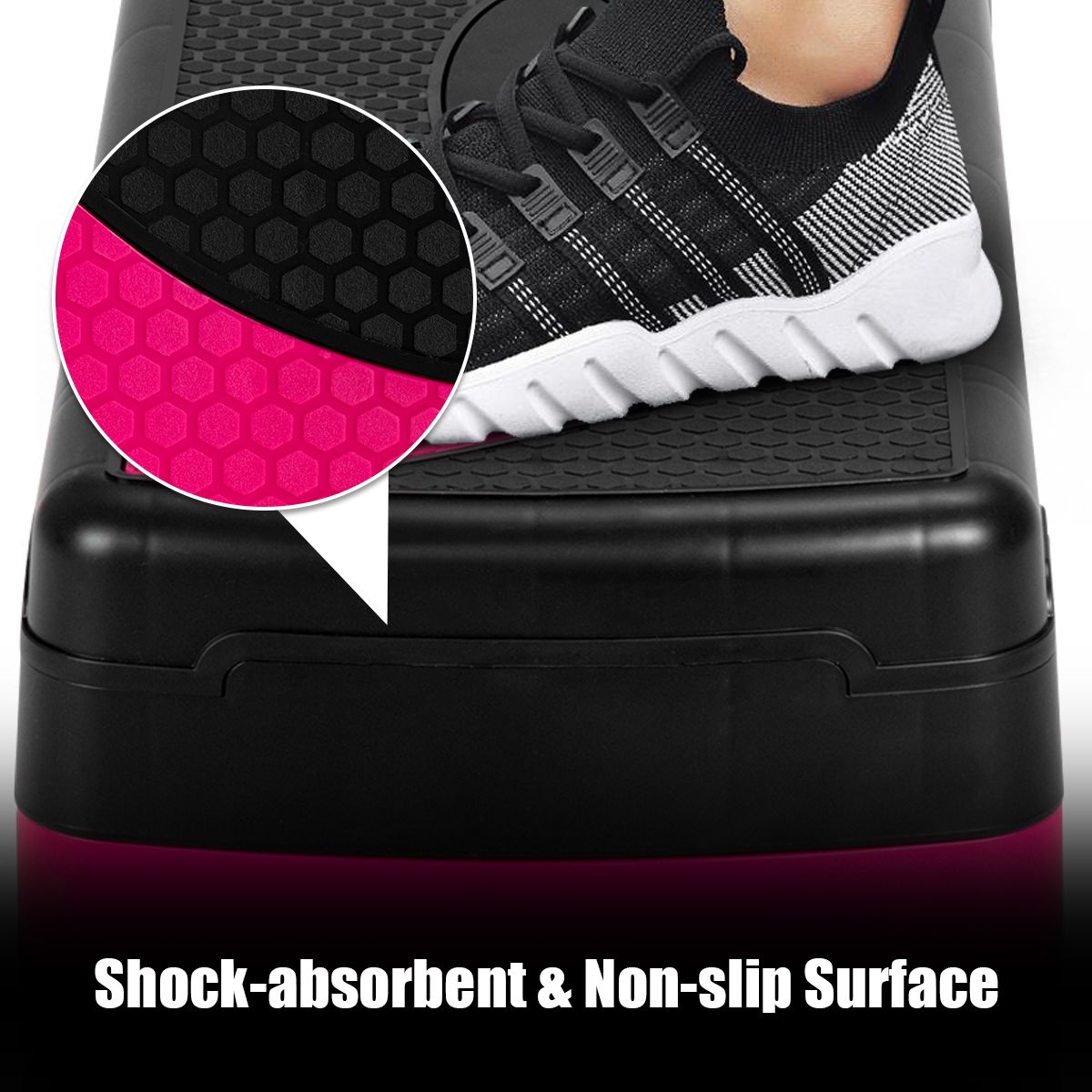 Non-slip Design Ensures Safety: The surface of the step platform adopts honeycomb design, which is non-slip and non-sticky, providing more grip and absorbing the shock to avoid slipping. In addition, the four non-slip feet at the bottom ensure the platform is stable and protect your floor from scratches.
