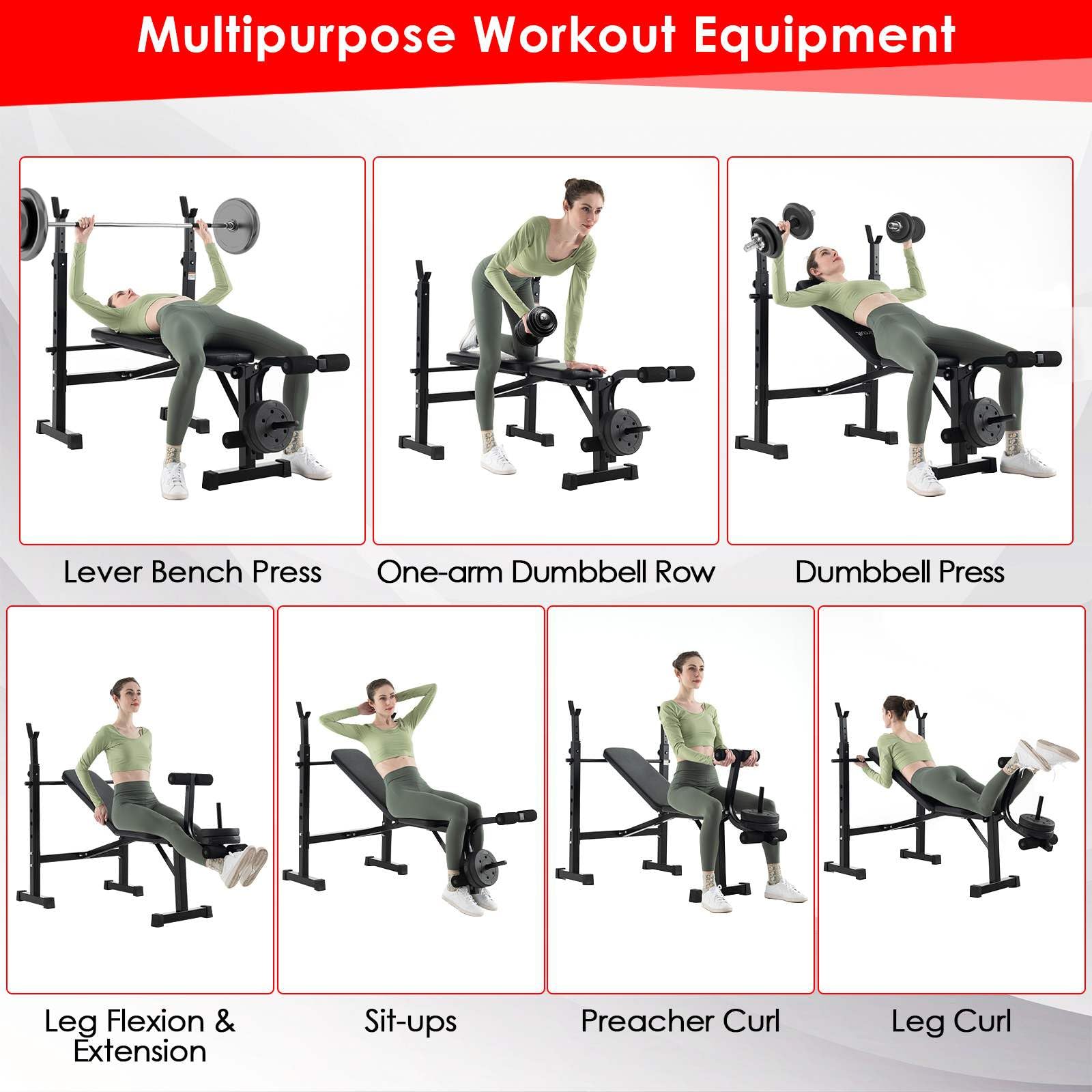 Adjustable Weight Bench & Barbell Rack Set Multipurpose Fitness Machine