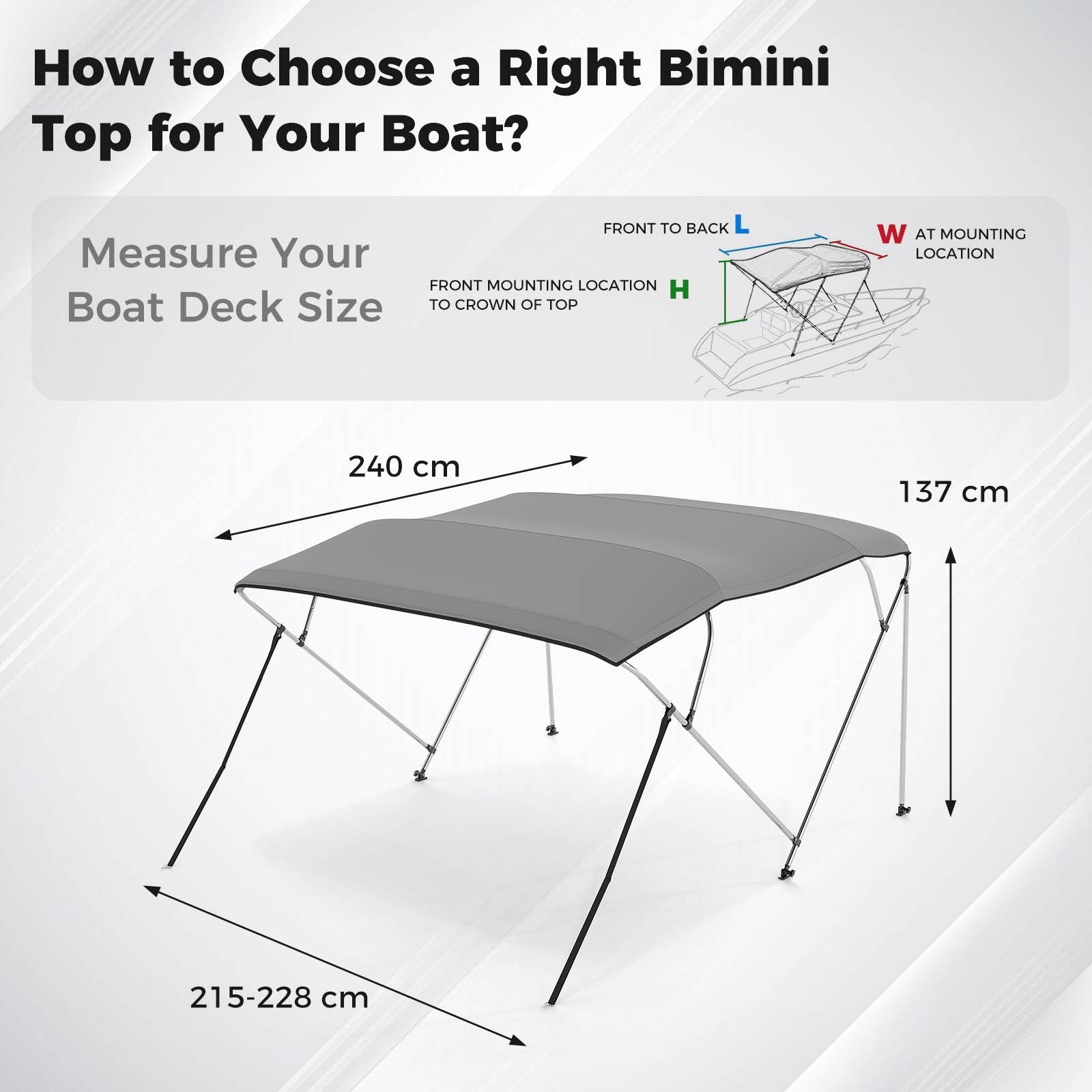 Boat Bimini Top Waterproof Fade-Resistant Oxford Canopy (240 x 215-228 x 137 cm (L x W x H)