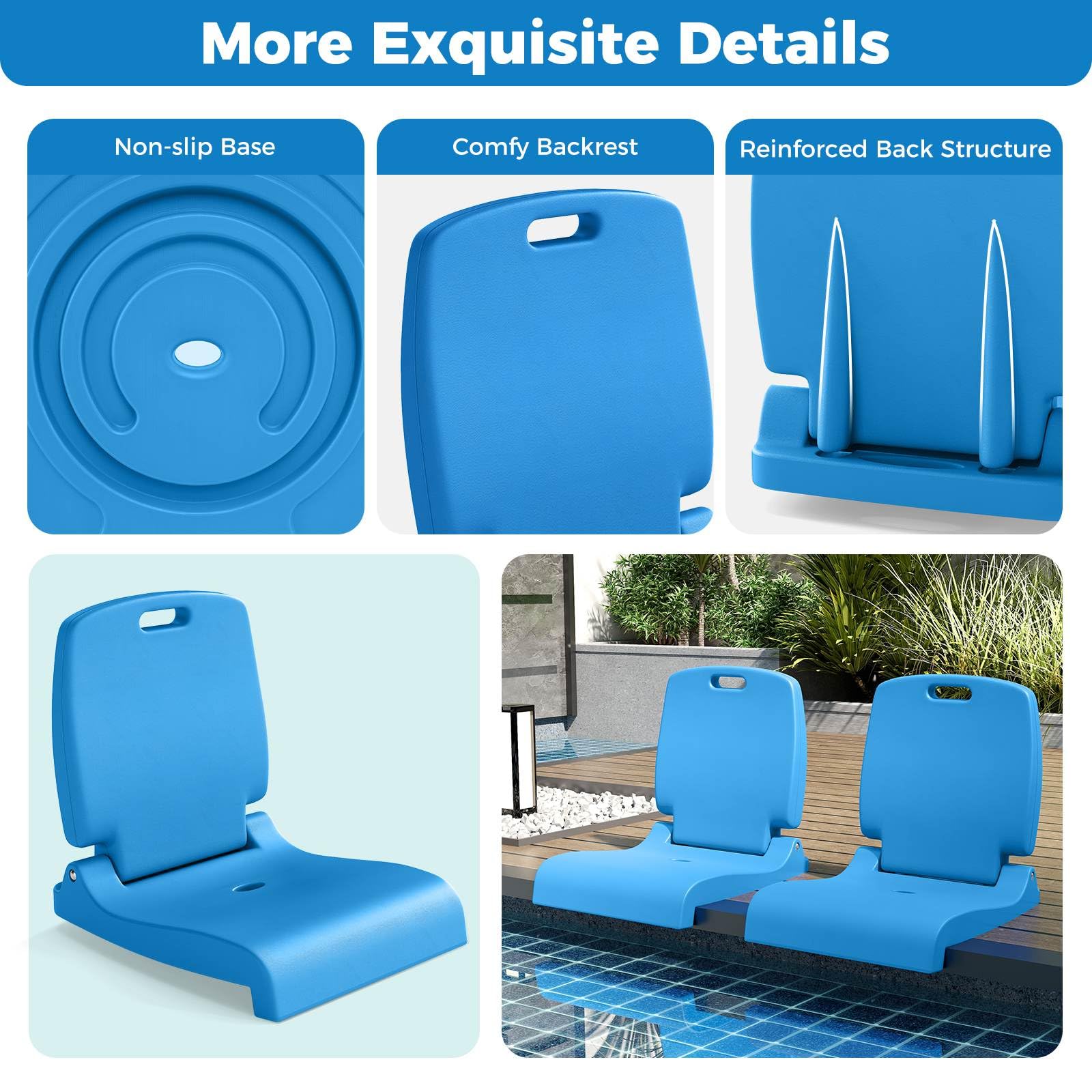 Made from high-quality PE material, this poolside chair is fade-resistant, waterproof, and easy to clean. The comfortable backrest with reinforced structure ensures excellent support for long periods of sitting. Besides, the lightweight chair can be folded into a compact size, fitting easily into your car trunk, and it also comes with a convenient handle for effortless carrying. This foldable chair includes practical drainage holes to prevent water accumulation and a built-in lip to keep it secure on pool edges or uneven ground. Whether you're by the pool, beach, boat, campsite, or picnic area, this versatile chair is what you want!