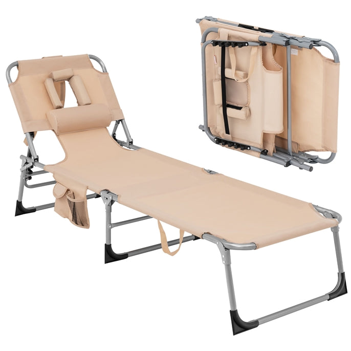 Folding Beach Lounge Chair with Pillow for Outdoor