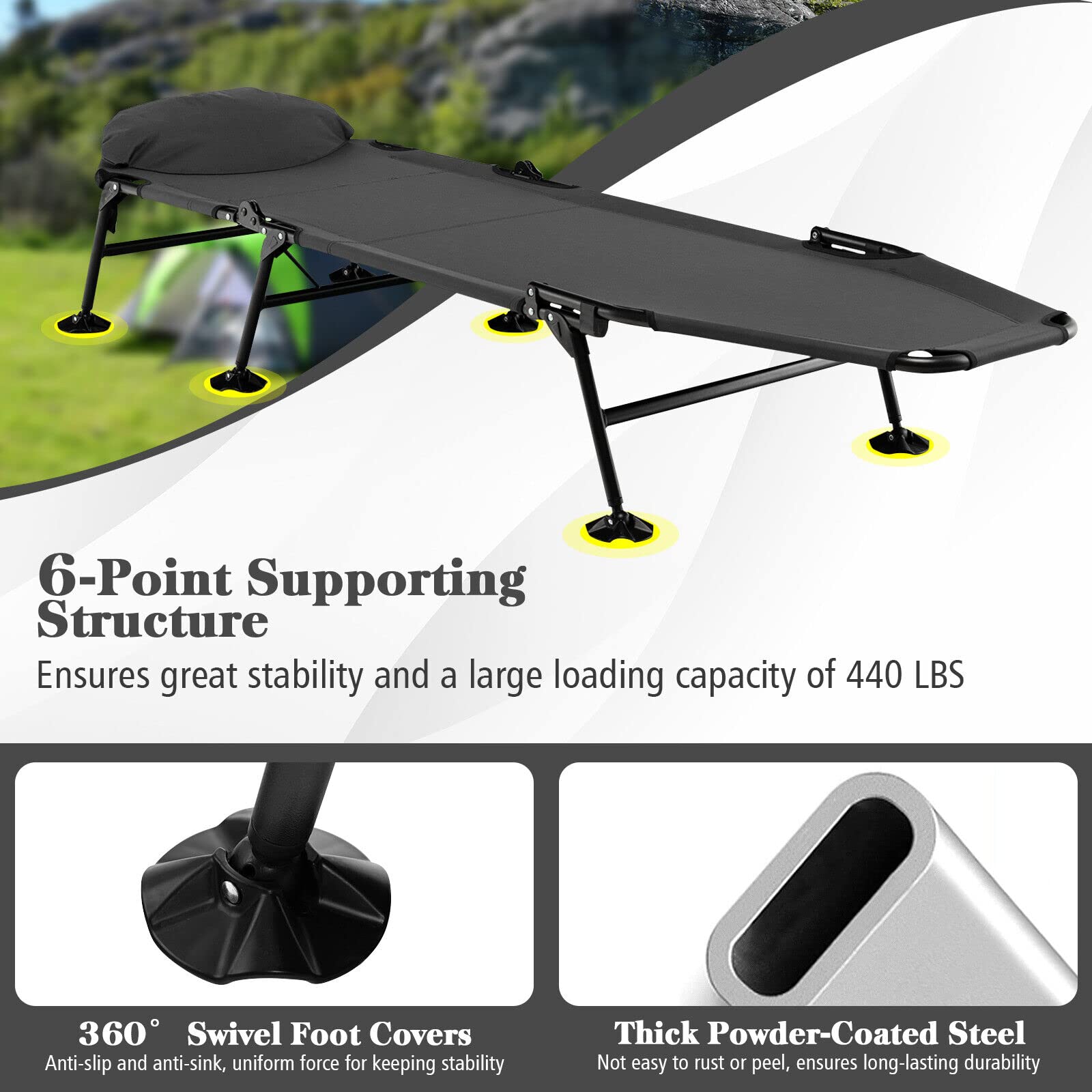 Folding Camping Cot With Detachable Mattress 360° Swivel Foot Cover