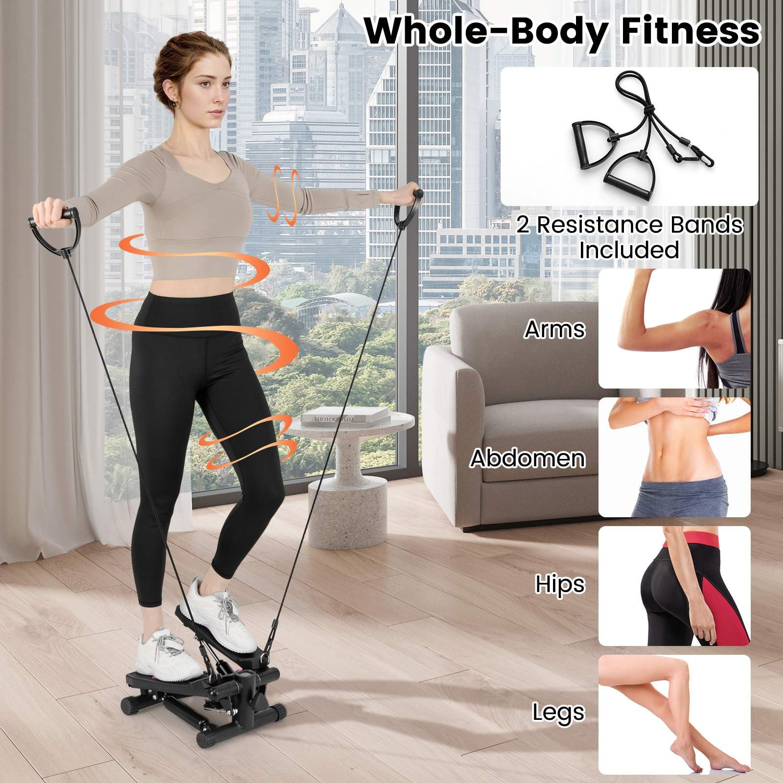 Mini Stepper for Exercise at Home with Resistance Bands for Full Body Workout