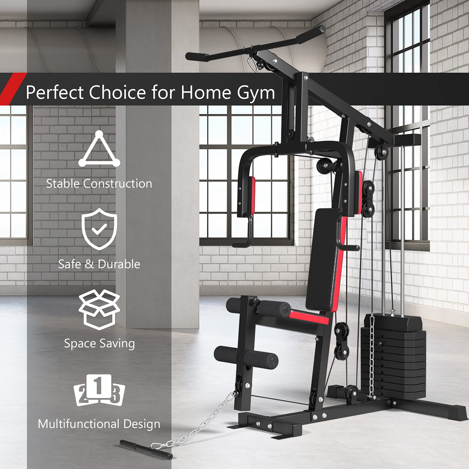 Multifunction Home Gym Station Indoor Strength Training Fitness Machine w/45 kg Weight Stack