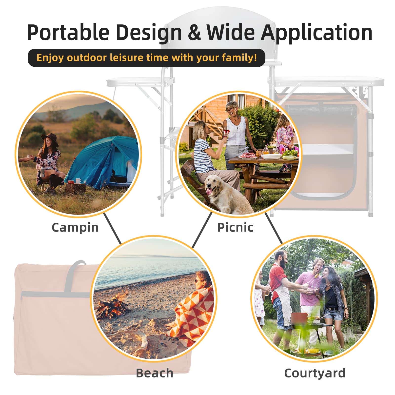 Outdoor Camping Table with Storage Aluminium Folding Camp Kitchen with Windscreen