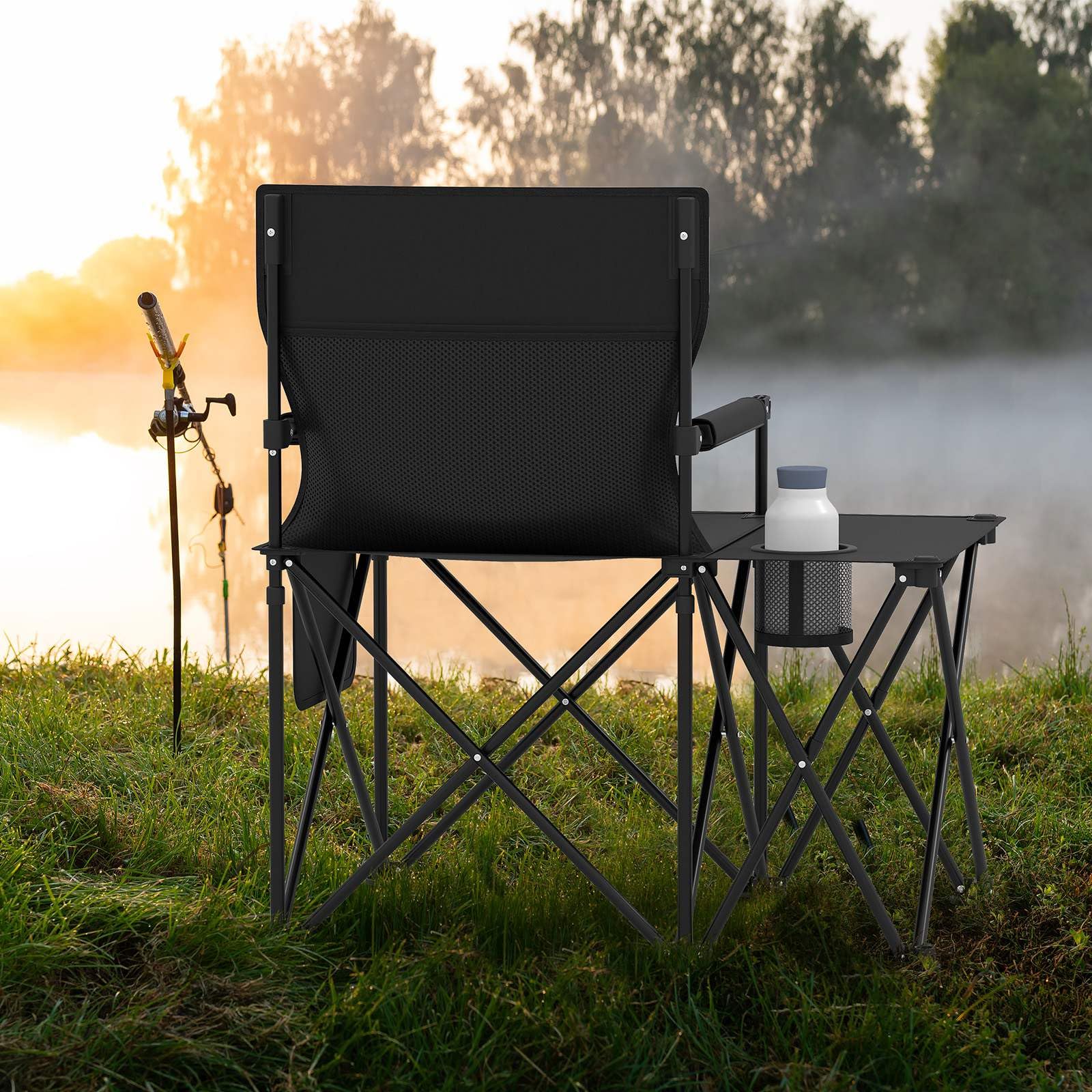 Oversized Camping Chair with Side Table & Carrying Bag for Fishing Lawn