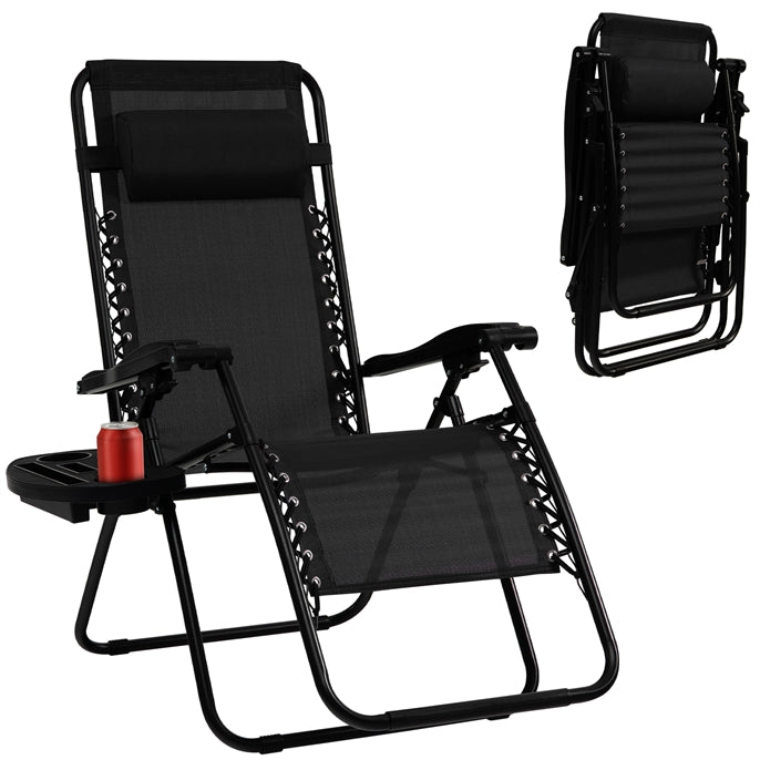 Patio Zero Gravity Lounge Chair with Cup Holder & Removable Pillow