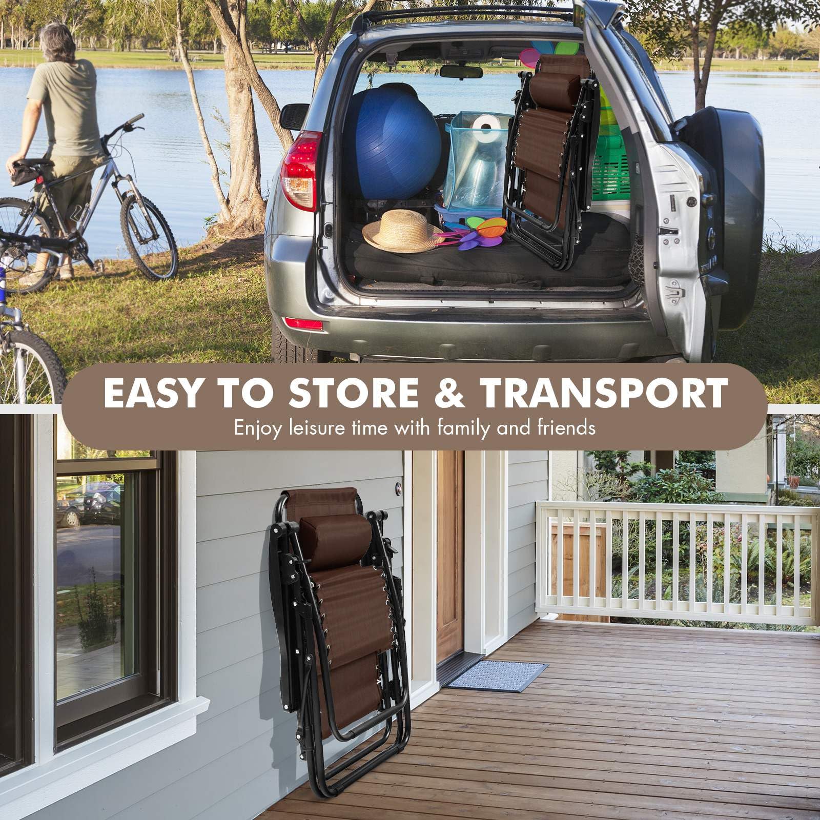 Easy to Store & Transport: With folding design, the patio reclining chair can be folded easily, so that you can place it in a corner or store it in the trunk. These compact zero gravity chairs are suitable for various occasions, such as patio, poolside, beach, balcony, living room, etc.