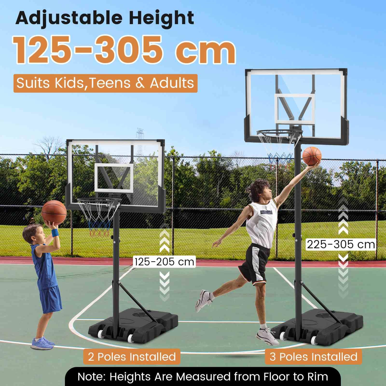 Experience the ultimate basketball fun with our versatile portable basketball hoop! Perfect for kids and adults alike, it seamlessly transitions from 125 cm to 205 cm, and from 225 to 305 cm, doubling as a swimming pool hoop at the lowest setting. The impact-resistant backboard and sturdy fillable base ensure durability and stability, while the easy move feature make it portable for indoor and outdoor play. A fantastic gift for family fun, this hoop system promises hours of active entertainment and friendly competitions right at home!