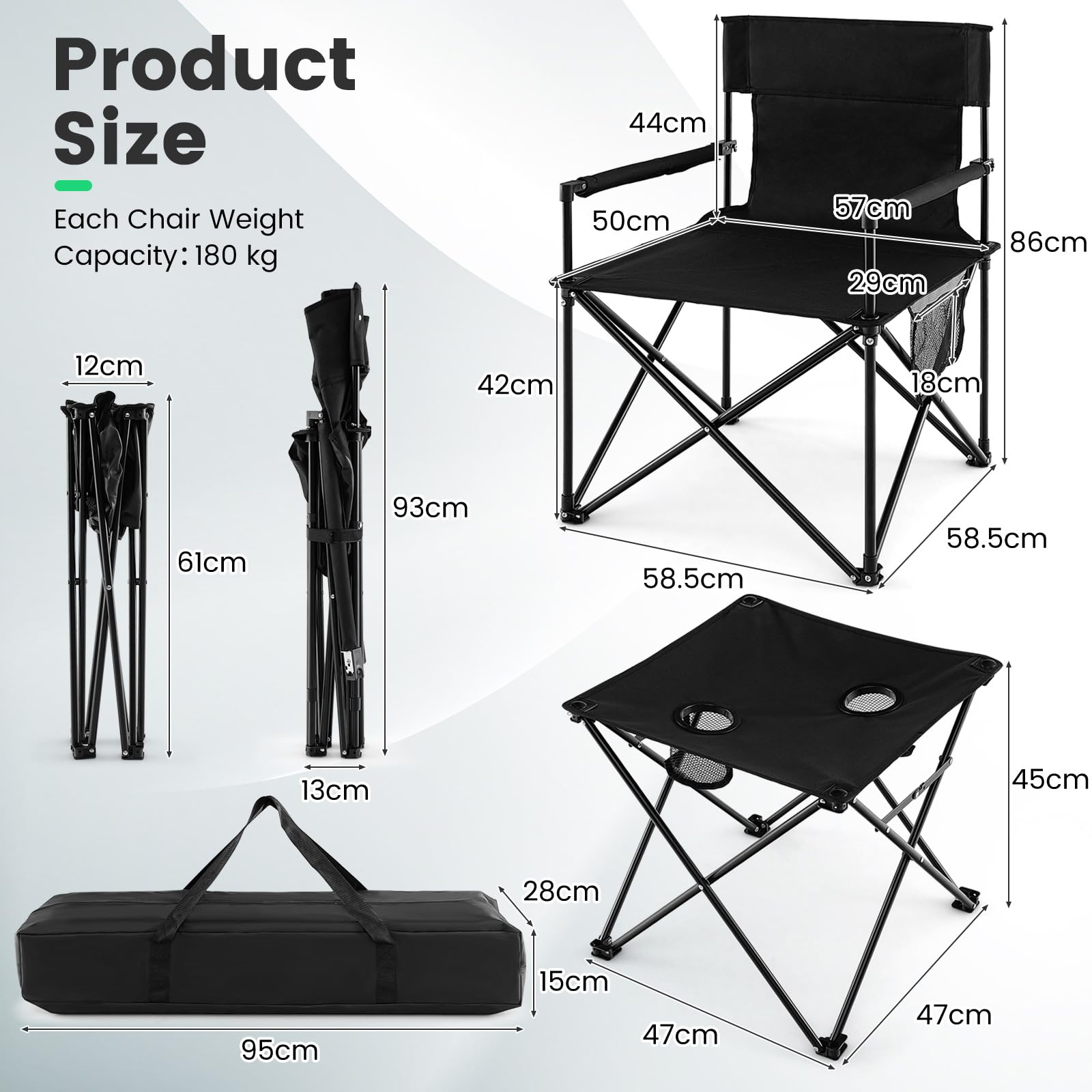 - Chair Folding Size: 15 cm x 13 cm x 93 cm (L x W x H)