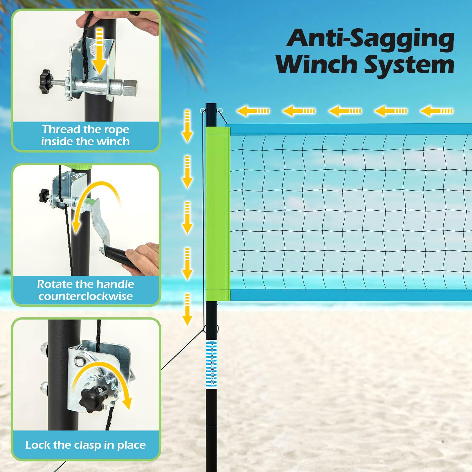 - Easy to tighten the net with the anti-sag winch system