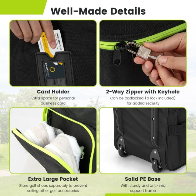 All-Round Protection for Your Golf Bag: Wear-resistant and waterproof 600D Oxford cloth covers the entire golf travel bag, and the 10 mm sponge padding and 210D liner provides extra protection for golf clubs during transportation.
