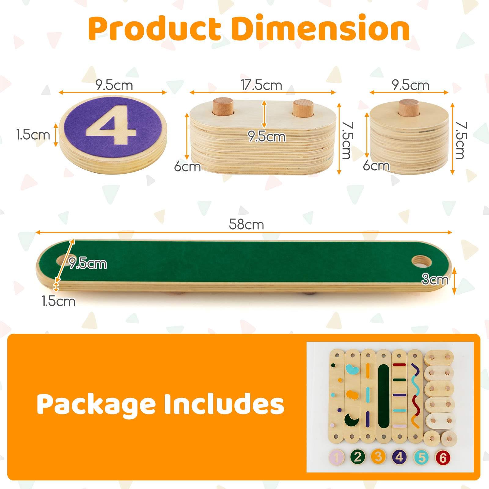 Encourage your child's development and play with this wooden balance beam set, an exceptional gift that promotes balance, coordination, confidence, creativity, and motor skills. These versatile balance boards can be connected into different shapes, such as hexagon, pentagon, zig-zag, triangle, straight path, and square, providing endless opportunities for creating unique balance activities and obstacle courses. Each balance beam features a flat side and an obstacle side with colorful raised modules. Crafted from premium wood, this Montessori toy ensures a safe play environment with no sharp edges to protect your child's feet.